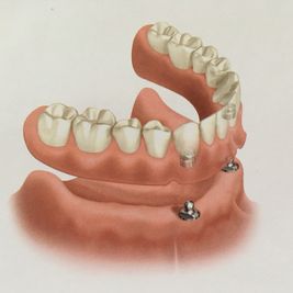 Les prothèses amovibles peuvent être installées sur 2, 3 ou 4 implants dentaires avec un système d’ancrage, soit sous forme de barre ou sur des piliers de type Locatorᴹᴰ.